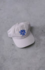 A low-profile six panel hat with curved peak made from 100% cotton.
